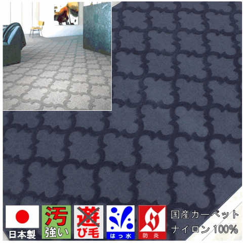 カーペット 8畳 ダイニング リビング 撥水 はっ水 絨毯 じゅうたん 防炎 防ダニ 送料無料 ナイロン グレー ネイビー ダマスク モダン 【品名 マジョレル】 8畳中敷き 300×300cm